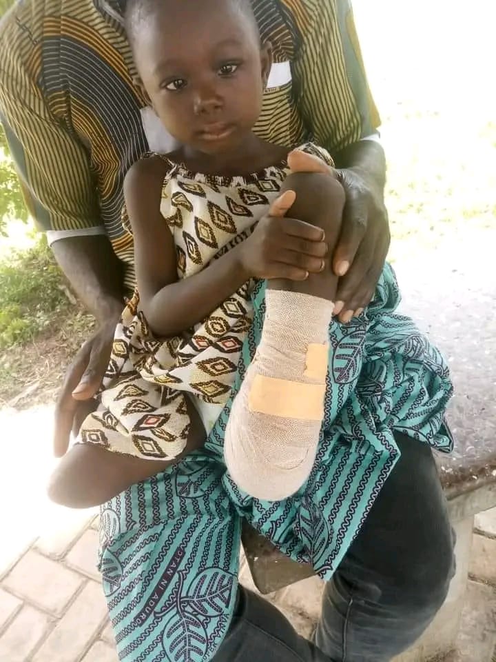 This picture is a portrait of a young child by name Ophelia in the Upper Region, she was knocked down by a Metro Mass Bus on her way to school. She was sent to the Upper West Regional Hospital and had both legs chopped off to save her life. At this stage Ophelia and her family helpless & needs our support in any form but more especially financially to help them go through the other treatments.