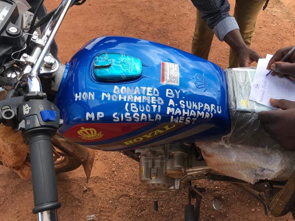 Member of Parliament for Sissala West Constituency in the Upper West Region, Mr. Mohamed Sukparu Adams donated a new Royal brand motor bike machine to the Sissala West District police command.