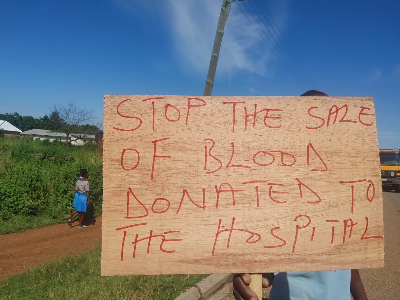Fourthly, Some Placards Suggested the hospital is into sale of Donated Blood by some donors, a development that has caused worry amongst residents of the area. “Stop the Sale of Blood Donated to the Facility”.