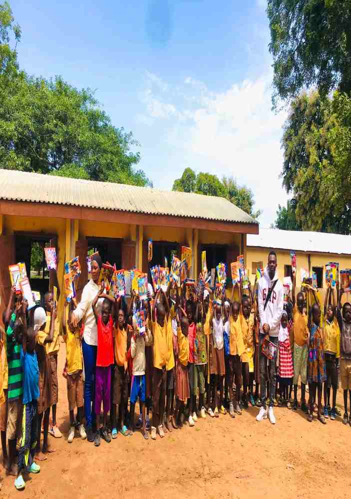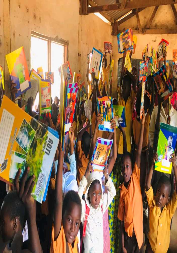 The donation drive sought to provide 300 exercise books to Basic 1 students. God being great,pupils in basic 2 were also captured.