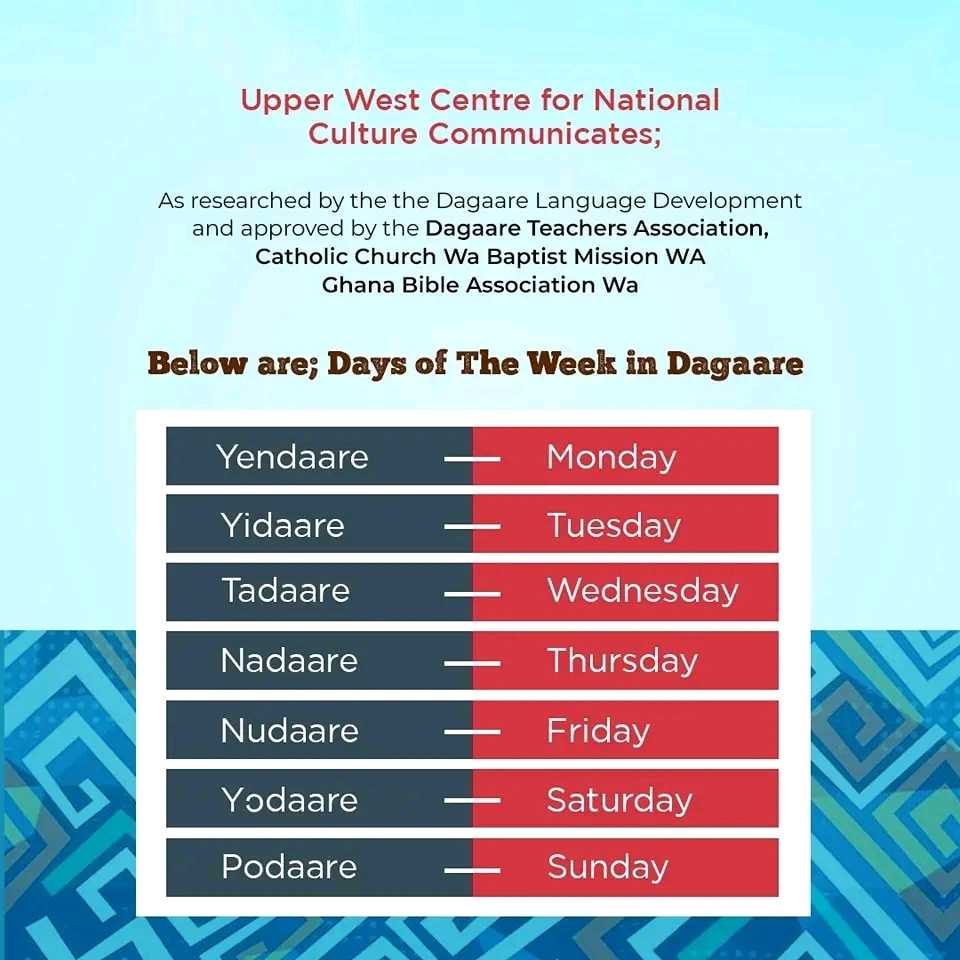 Below are; Days of The Week in Dagaare.