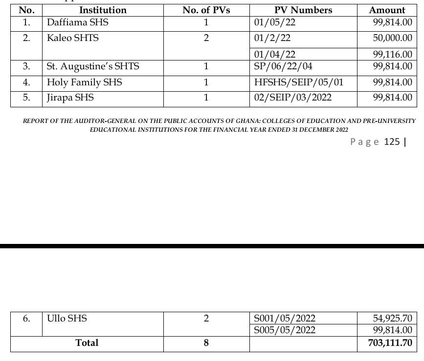 The Auditor General Report for the 2022 Audit Year on colleges and Senior High Schools has directed that Heads of Six Senior High Schools Should be Sanctioned.