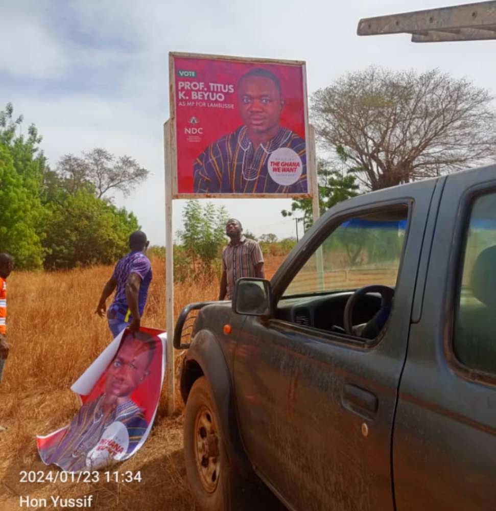 The Parliamentary Candidate of Lambussie on the Ticket of National Democratic Congress (NDC), Dr. Titus Beyuo has been called upon by some party faithfuls to be circumspect after his campaign team was spotted mounting Billboards at Strategic points without The Image of their Flagbearer, John Dramani Mahama on their campaign poster.