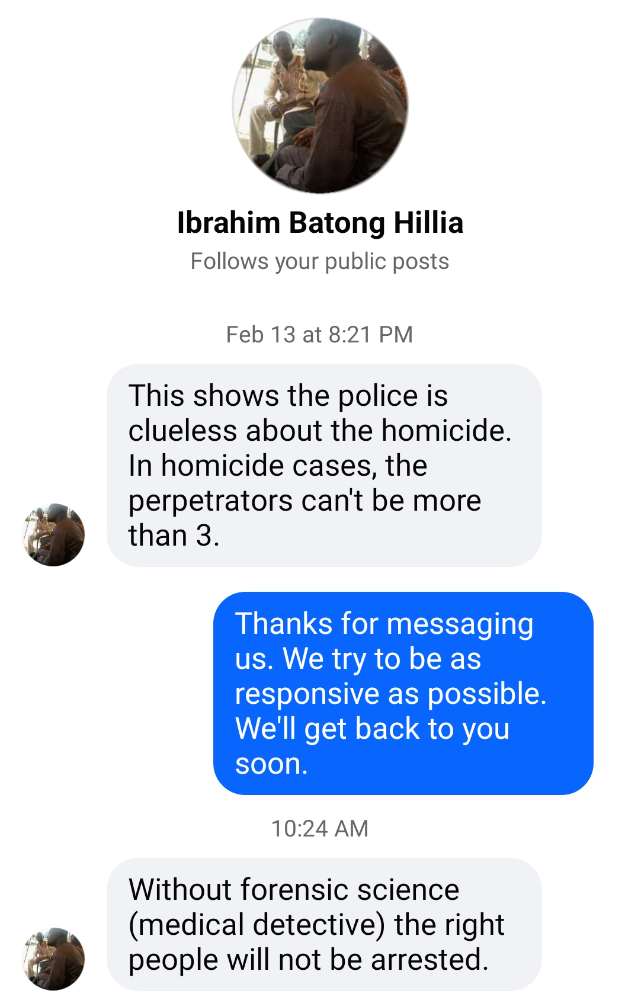 A Humanitarian and Human Right Activist, Mr Ibrahim Batong Hillia has shared his ideas with the Ghana Police Service through Upper West Media Team that without Forensic Science it’ll be difficult to arrest the killers of Eric Johnson, The CEO of ‘Jirapa Dubai’ Assassinated in the 10th of February 2024.