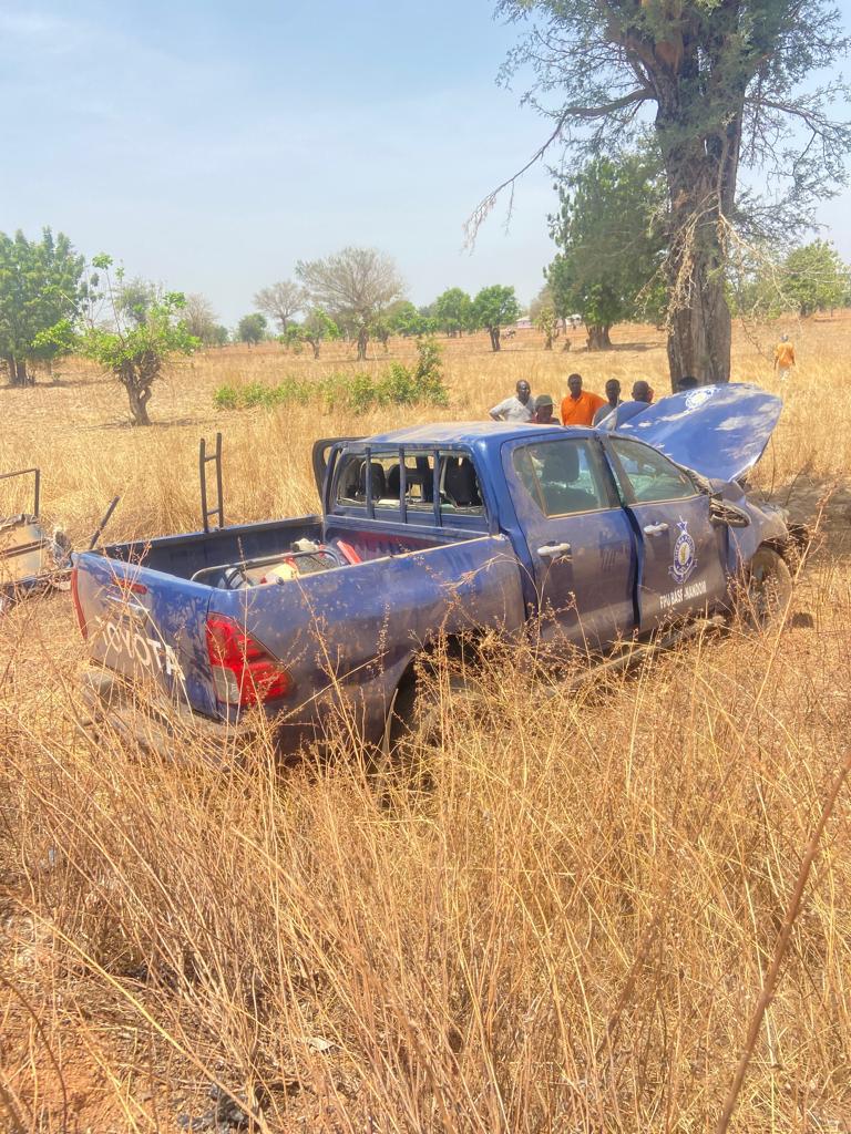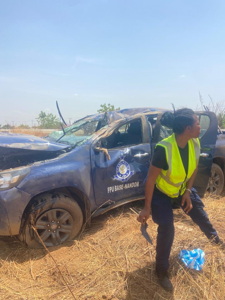 Chief Inspector Fatawu Jangu, Constable Sandra Abdul-Rahman, Constable Amu Rose, Constable Amponsah Felix, Constable Asare Emmanuel, Constable Oppong Emmanuel, Constable Lamedeku Ezra Kwaku and Constable Christian Antwi who were onboard the police vehicle with registration number GP 704 have sustained various degrees of injuries.