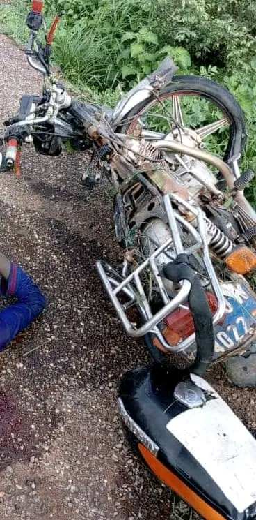 A picture of the motorbike that was being used by the victims is completely destroyed, an indication that the accident was severe.