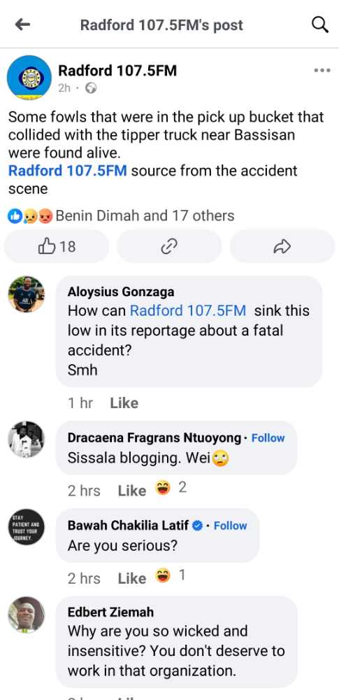 Some Reports by Radford FM After the Accident Didn’t Go Down well with Netzens.