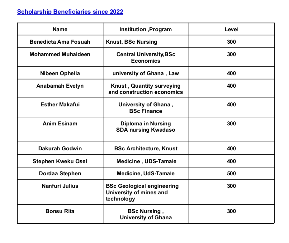 underprivileged tertiary students across Ghana. These scholarships cover tuition,