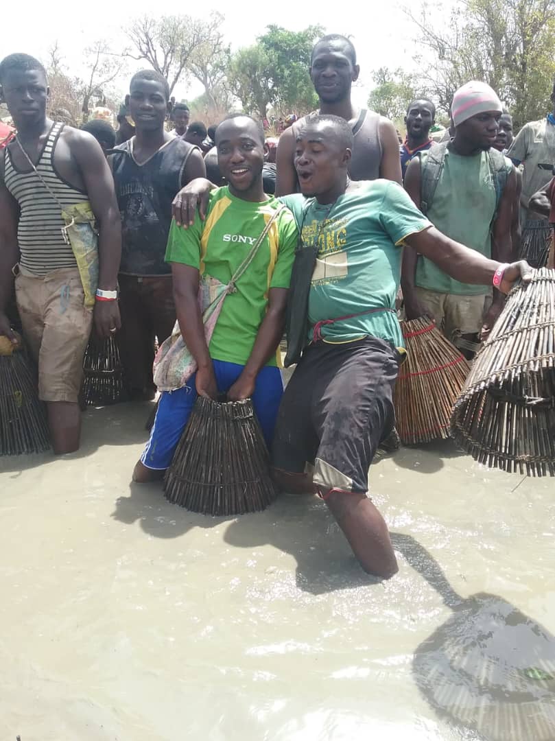 At this stage, the Koɔŋ nyeɛriba madly rush to catch fish. All that is needed for an individual is to be fast, timing, watchful in order to catch fish. They do this by respecting the rules of the ritual. After some time, say 30 to 40 minutes, the fishers will relax and then resort to singing to boost their morale.