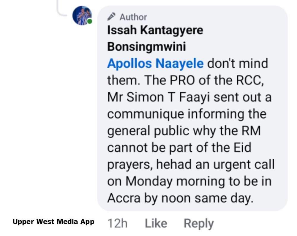 According to Upper West Regional Communication Officer of National Democratic Congress (NDC), the Public Relations Officer of the Upper West Regional Coordinating Council, Mr. Simon T. Faayi revealed what actually happened before the Upper West Regional Minister Left Wa For Accra Ahead of the Eid festivity held on the 31st of March 2025.