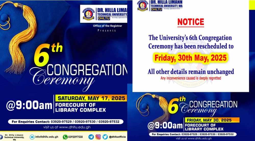 The Dr. Hilla Limann Technical University has Postponed its 6th Congregation from 17th May to Friday, 30th May 2025.
