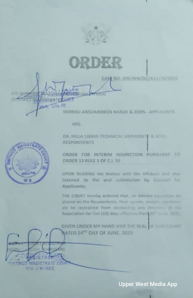 Wa Magistrate Court Places Injunction on Upcoming Alumni Elections of Dr Hilla Limann Technical University Slated for Tomorrow 25th June 2025.