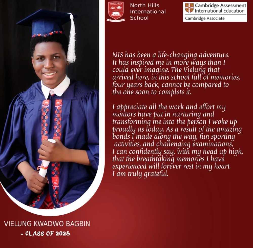 Vielung Kwadwo Bagbin, son of the Speaker of Parliament, Alban Sumana Kingsford Bagbin, has emerged the best-performing student at North Hills International School during its annual awards ceremony held on Friday, July 4, 2025.