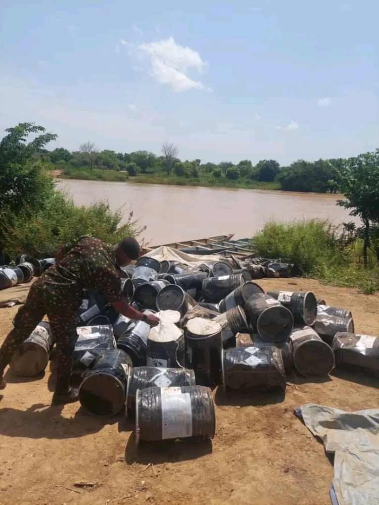 At exactly 1345HRS, the resilient personnel discovered the consignment at the bank of the Black Volta lake ostensibly ready to be transported into Burkina Faso. The cache was collected and transported to the Nadowli police station for safe keeping, examination, and further action.